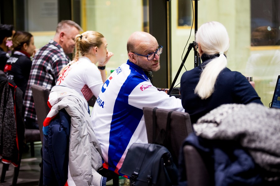 Technické problémy se množí. Technici měnili několik elektronických madel a bohužel se to dotklo výrazně českého týmu ve večerním utkání proti Skotkám. Ve dvou důležitých momentech bylo nutné hru přerušit z technických důvodů, což bylo pro odhazující hráčku velmi nepříjemné. Navíc se různí instrukce ohledně aktivace celého systému, takže nejistota narůstá. Hráli jsme na dráze „E“, kde bylo za scoreboardem extrémně chladno kvůli nad hlavou běžícímu systému odvlhčení. Už jenom sezení na nepohodlných vysokých barových židličkách u nestabilních barových stolků je zosobněním nepohodlí, ale rovněž absence nápojů či malého občerstvení je snížením standardu mezinárodní sportovní soutěže. Utkání Češek se Skotkami bylo zajímavé a celkem kvalitní. Z výhry se radovaly Skotky, kterým se podařilo v první části získat oproti plánu dvojku při výhodě soupeře, a to je nasměrovalo k vítězství.