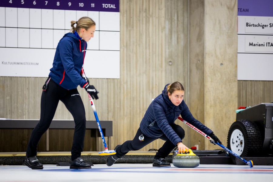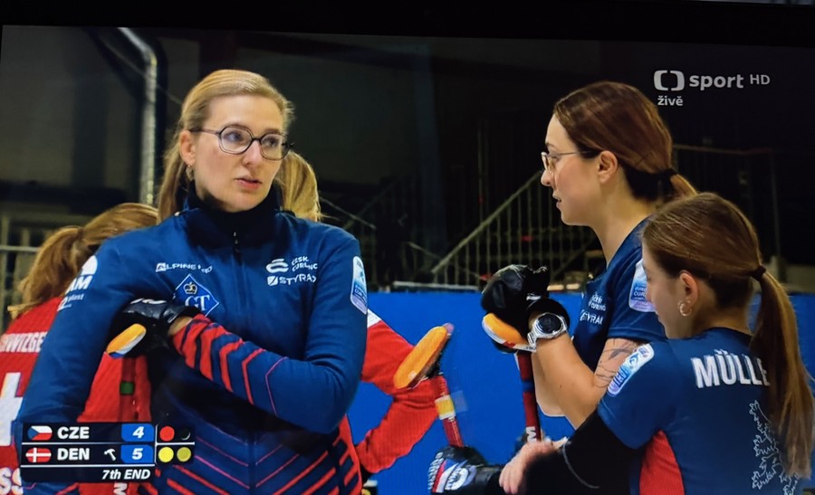 Zahajovací session letošního evropského šampionátu patřila ženám. Na pěti drahách se představily reprezentace deseti zemí, které patří v této kategorii k evropské elitě. České ženy odehrály svůj první zápas na dráze číslo jedna proti Dánkám vedeným velezkušenou skipkou Madeleine Dupontovou a třiašedesátiletým trenérem Ulrikem Schmidtem. Za ta léta se navzájem považujeme za tradiční rivaly, proto přece jen trochu překvapí, když Mathilde Halseová, hrající trojku prozradí svou neznalost pravidla, které bylo zavedeno již před mnoha lety, a zkouší Kláru přesvědčit o tom, že se nesmí připravovat na svůj odhod v prostoru za vlastními kameny. Anna, Míša, Aneta, Klára (pátou hráčkou je Karolína) hrají až do šestého endu velmi solidní a vyrovnaný zápas. Sedmý end nás však zastihuje v slabší chvilce, kterou Dánky využívají k zisku tří bodů a vytvoření náskoku celkem čtyř kamenů. V osmém endu tohoto televizního duelu bychom rádi uhráli trojku zpátky, nebo alespoň dvojku, ale musíme nakonec odvracet hrozbu několika dánských bodů. Závěrečné draw sice končí blízko ideální pozice, ale nikoli úplně na ní. Po krátké úvaze, za stavu 4 : 10, gratulujeme soupeřkám a jdeme se vypovídat Jindrovi (sportovní psycholog) z pocitů, které provázely naše první utkání na Evropském curlingovém šampionátu 2025.