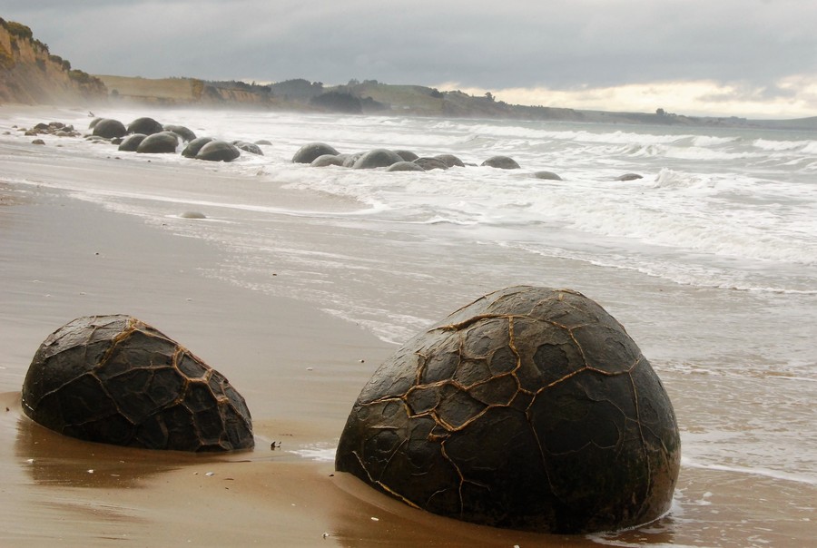 Christchurch - Dunedin. To je asi 380 km, povolená maximální rychlost 100 km / hod., to dávalo kalkulaci na cca 5 hodin na cestě. Měli jsme vytipováno několik zajímavých míst. Nejlepší byla asi procházka po pobřeží k velkým kulatým balvanům (průměr až 4 metry), které jsou naprosto neuvěřitelně rozházeny po cca 100 metrovém pásu. V Dunedinu máme první trénink. Hala je nehostinná, ale příjemný icemaker Reece nám dělá, co nám na očích vidí. Večer restaurace a v ní steaky s bílým vínem (bez Karla - trochu nefit).