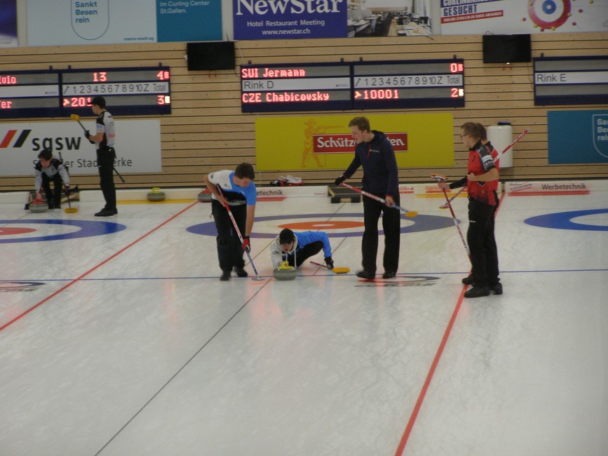 Po šesti letech jsem opět v St. Gallen. Tentokrát s juniorskou reprezentací na turnaji EJCT. V roce 2017 tady české ženy předvedly statečný výkon a z A skupiny postoupily přímo na mistrovství světa, které se o pár měsíců později konalo v kanadském North Bay. Výsledkem bylo šesté místo, dosud nejlepší umístění žen ve světové konkurenci. Juniorské národní výběry budou v prosinci usilovat o návrat do světové elity, a to po hubených devíti letech, plných strádání a marného klepání na dveře desetičlenného světového elitního klubu. Za to dlouhé období se o průlom pokusilo několik talentovaných hráčů a hráček, ale úspěch se nedostavil. Zářijový turnaj, personálně tradičně zaštítěný Brigittou Brunnerovou, konaný ve městě označovaném za bránu do Appenzellských Alp, je vstupem do soutěžní sezóny národních výběrů hráčů do jednadvaceti let. Tedy i těch českých. Jsou tady hned tři české týmy, dva mužské a jeden ženský. Národní juniorský tým mužů, vedený kapitánem Vítem Chabičovským, hrál své první utkání proti německému týmu Sebastiana Heima, vedenému zkušenou koučkou Gesou Angrickovou. Přes značnou rozdílnost kvality ledu, porovnáme-li St. Gallen a roztylskou halu v Praze, zvládli čeští muži úspěšně, i když těsně úvodní duel a trojkou v posledním endu přehráli Němce. Získali tím první tři body do skupinové tabulky. David Škácha, Kryštof Žďárský, Ondřej Bodlák a Vít Chabičovský budou v rámci skupiny hrát ještě čtyři zápasy a závěrečná tabulka určí postupující do nadstavby. Odpoledne podlehl tým Jana Matějíčka hrající ve druhé skupině Skotům (skip Ross Craik). Zítra ráno nastoupí české ženy (skipka Veronika Vašáková) proti Švýcarkám (skipka Zoe Schwallerová).